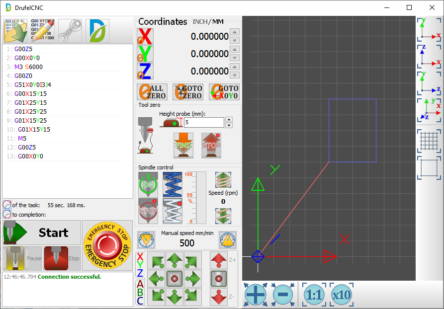 Consider an example of using the G50 and G51 commands below: First, create a simple square program.